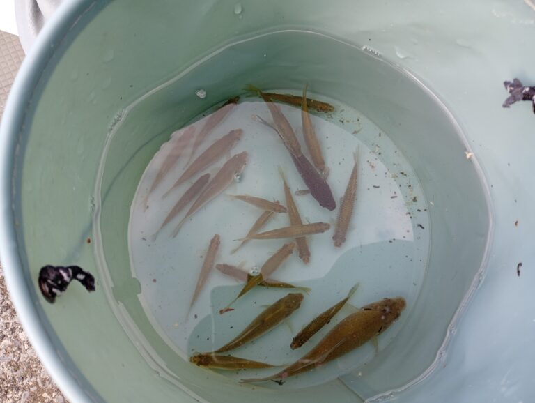 晴れた日には釣り人が沢山います。鯉、鮒、ハヤなどが釣れます。手長海老やアメリカザリガニがいますし、春先にはヒキガエルが産卵に来たりします。あと、夏が過ぎた頃にはハリガネムシに寄生されたカマキリも見かけたりします。