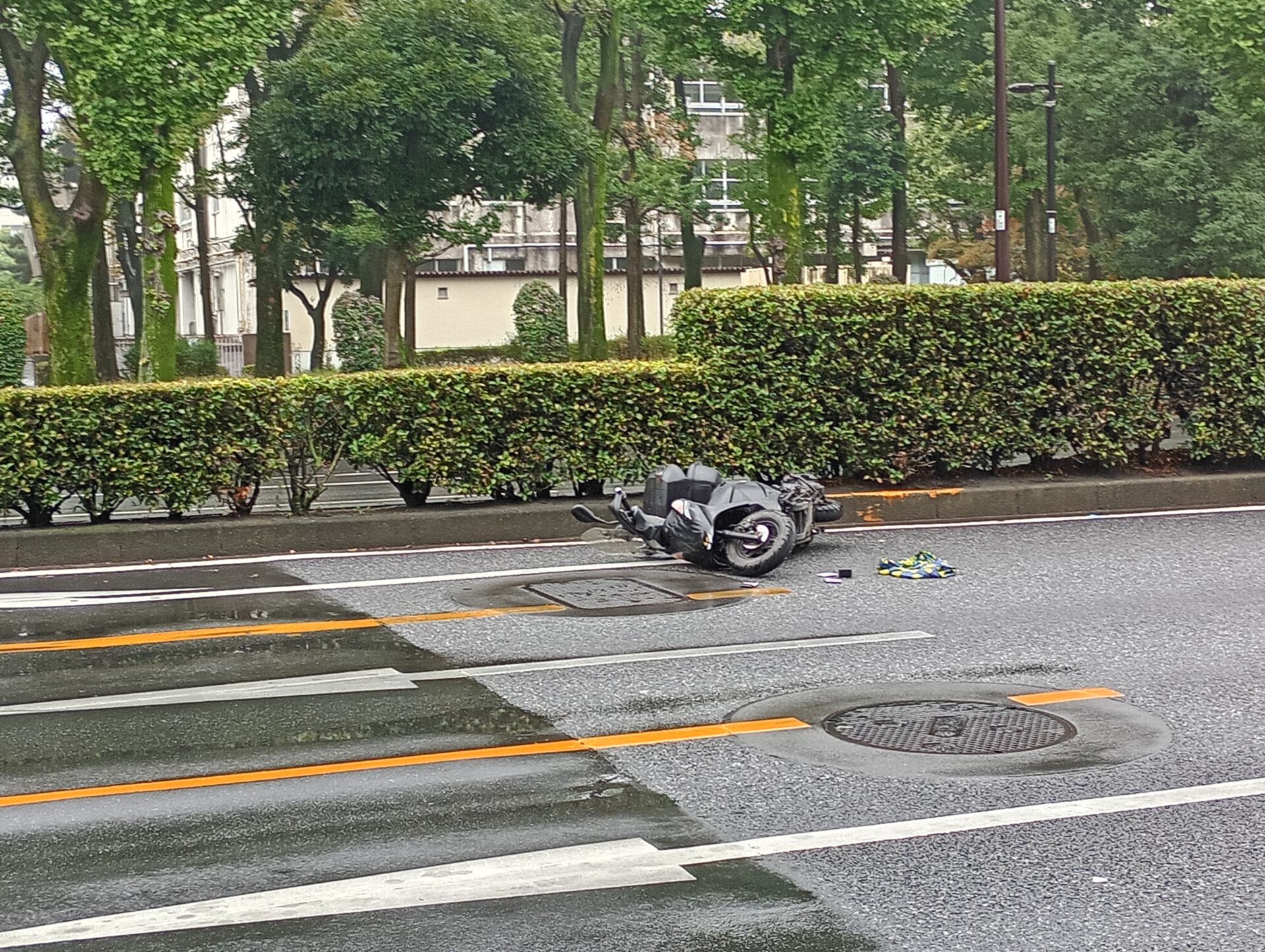 自損事故なのか、衝突なのかなど野原因は不明ですが、現場には転倒したバイクのみが残されていました。