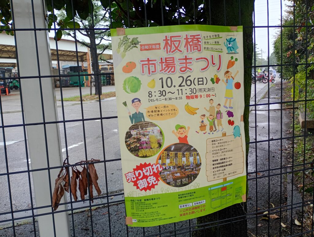 2025年10月26日、都営三田線新高島平駅そばに位置する東京都中央卸売市場板橋市場にて、年に一度の「板橋市場まつり」が開催され、生憎の天気にも関わらず朝早くから多くの家族連れや地域住民で賑わっていました。