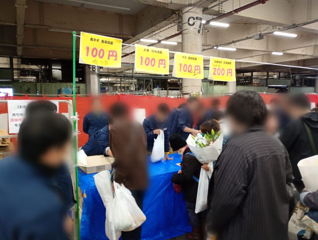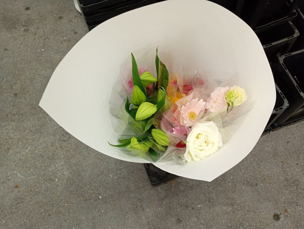 花も売りつくしのタイミングだったようで、10本で1,000円に値下げされており飛ぶように売れていました。