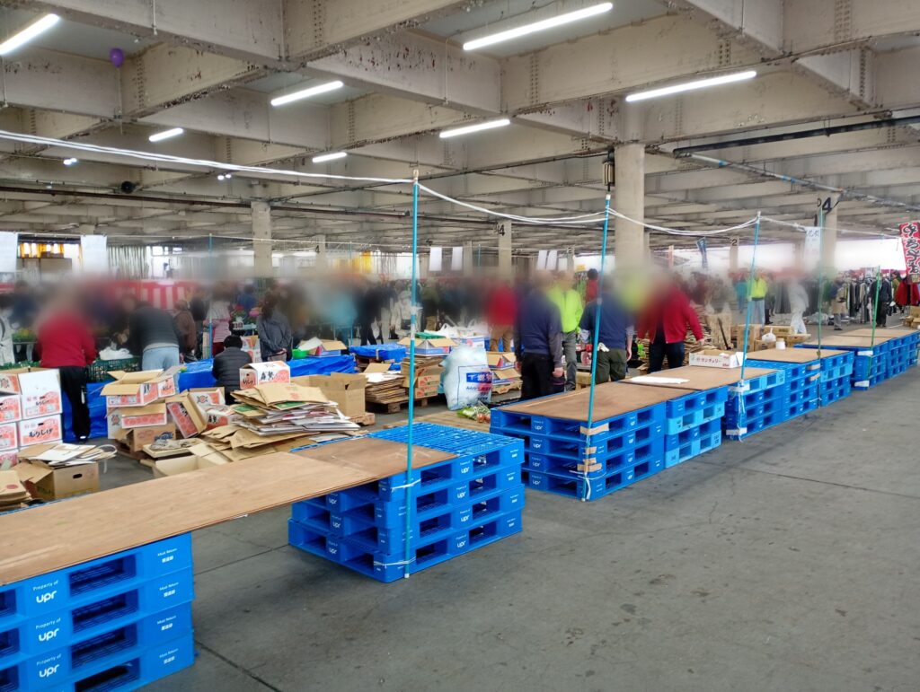 普段は市場として多くの段ボールが積み重なりフォークリフトが行き交う場内ですが、年に一度の市場まつりの日は、地域の多くの方で賑わいます。