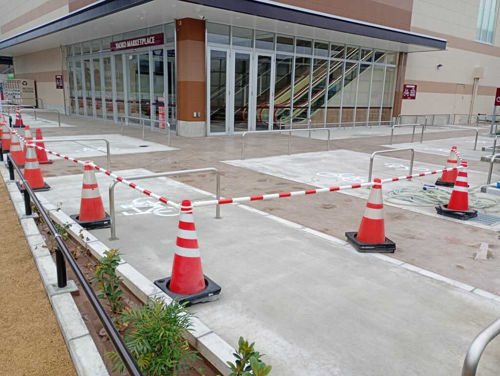 駐車場は右折入庫禁止なのでバイパスから進むと、ココスを曲がり、コメダを曲がり、西松屋を曲がる感じになりそうですね。近隣の車の交通量は増えそうですね。