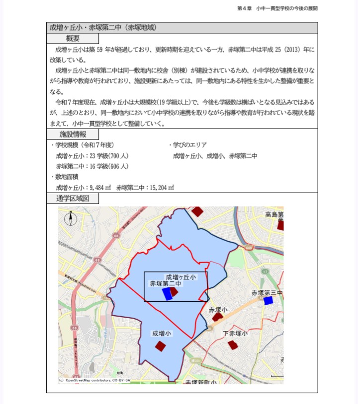 先日板橋区の文教児童委員会にて小中一貫型学校化が議題になり成増ヶ丘小学校と赤塚第二中学校も話題に上りました。