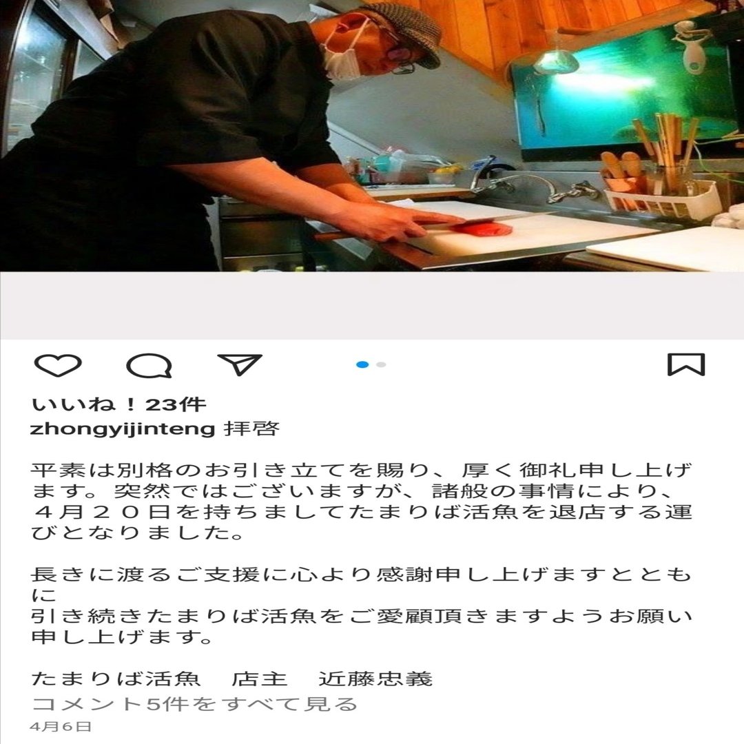 スキップ村から少し小道に入ったところにあった居酒屋「たまりば 活魚」の店主が代わるそうです。退店ですが、どうもお店は残るそうです。