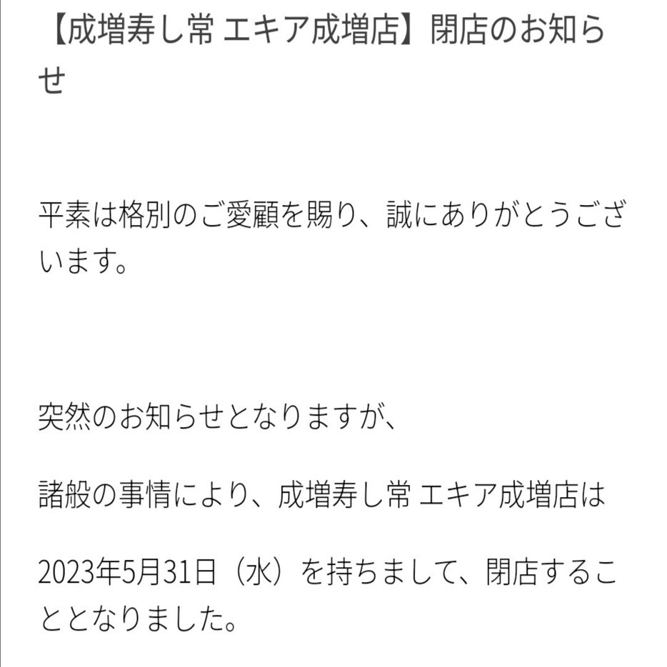 【成増寿し常 エキア成増店】閉店のお知らせ | 寿し常|公式サイトwww.sushitsune.co.jp