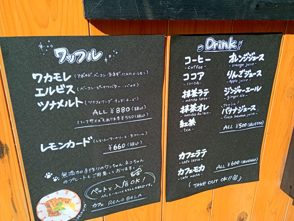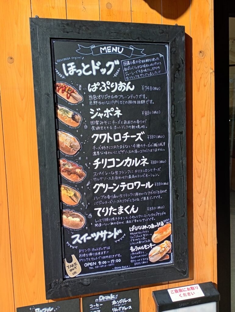 店頭にはメニューが掲示されていました。オープン当初から少しずつメニューが増え、最近ではホットドッグが食べられるようになりました(テイクアウトもあります)。