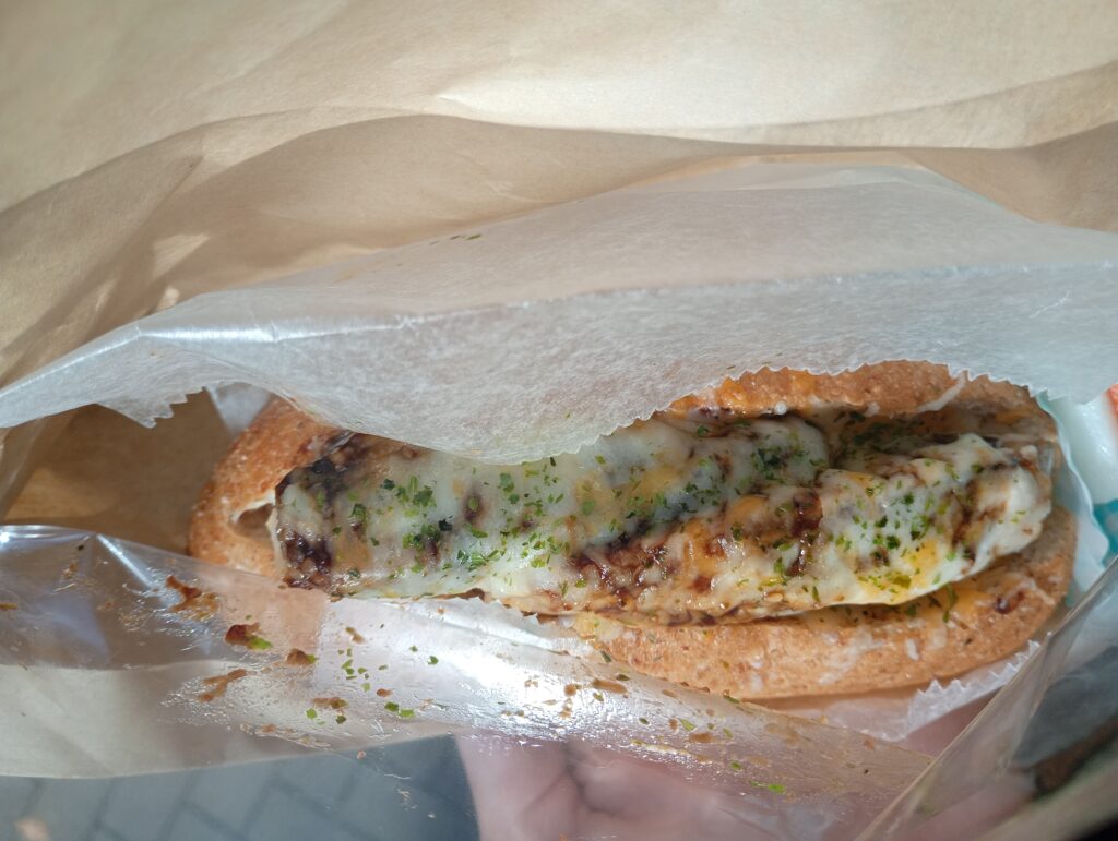 ホットドッグが美味しいそうなので、テイクアウト用にジャポネ880円を買ってみました。特製の田楽味噌のソースがかかっていて、美味しかったです。