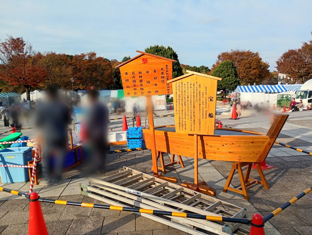 宝船は今年は白石農園さんをはじめとした大泉で生産された野菜で作られたそうです。板橋の農業まつりの宝船は、農家さんも少しずつ減ってきているなどの背景もあり、一部は区外のものもあると聞きましたが、練馬は大泉だけで宝船ができるというのはすごいですね。
