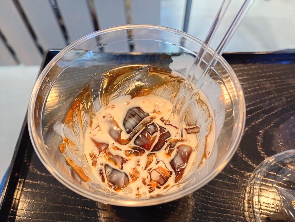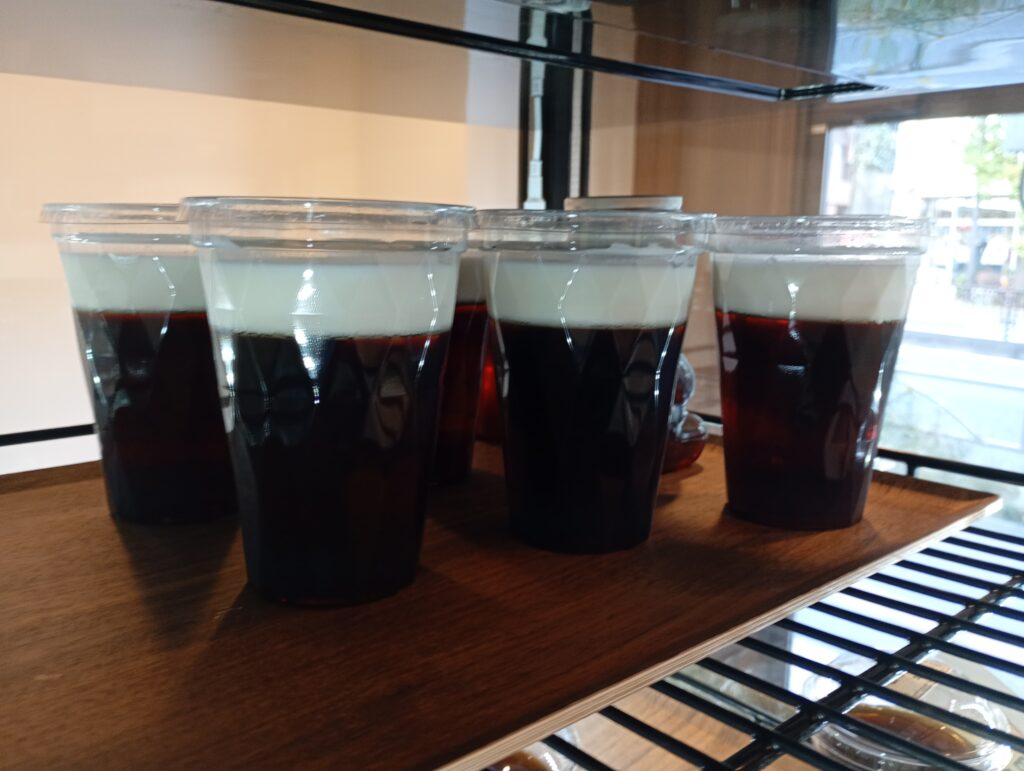ちなみに、こちらがコーヒーゼリーとミルクが2層になったドリンク450円です。オープン当初はなかったのですが、その後の商品開発により完成した一品です(家におみやげに買って帰ったら、すぐになくなりました)。