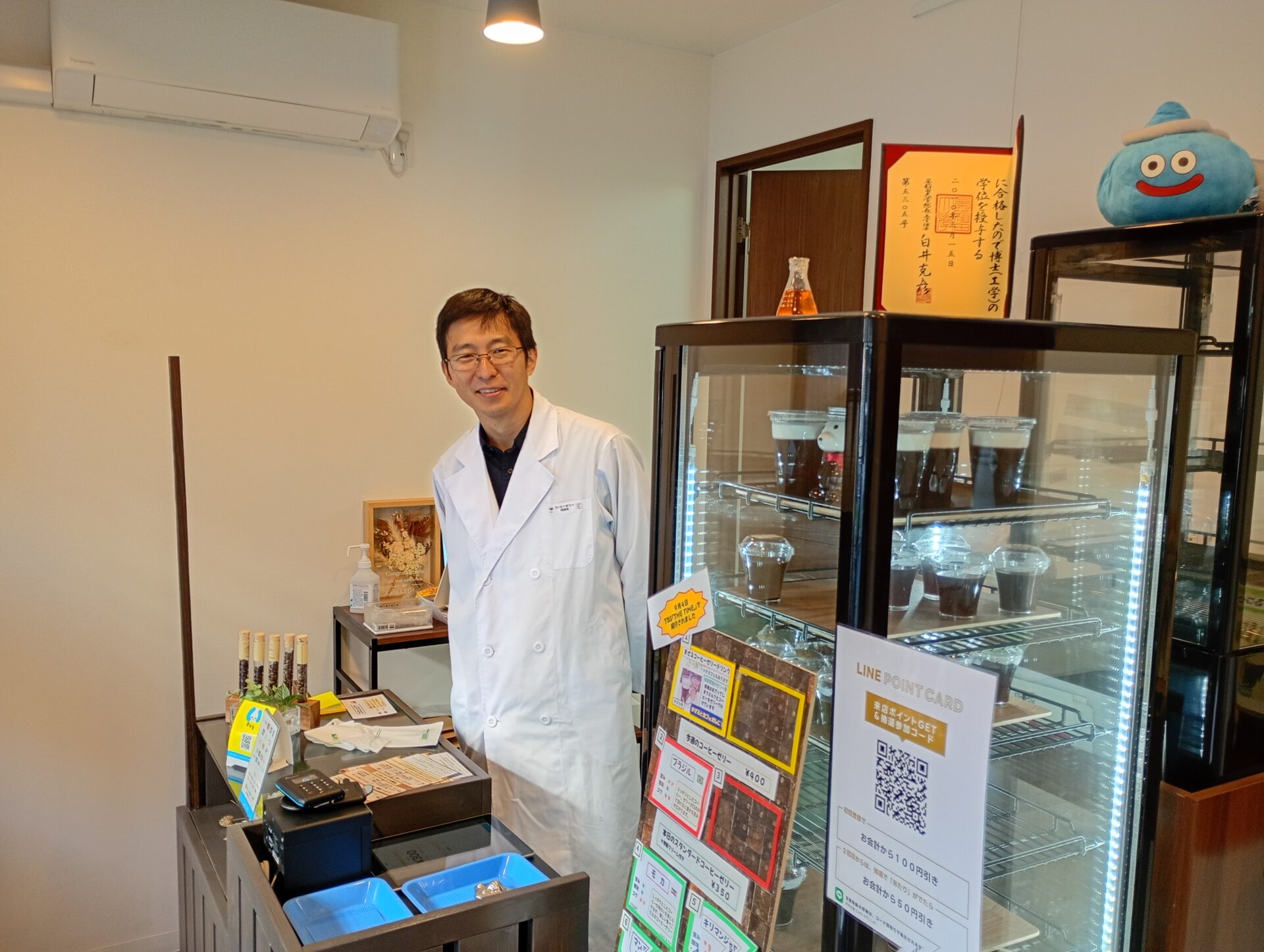 店内に入るとオーナーの秋元さんが迎えてくれます。秋元さんは早稲田大学で博士号を取得し、現在も理化学研究所に勤務する、正真正銘の研究者です。