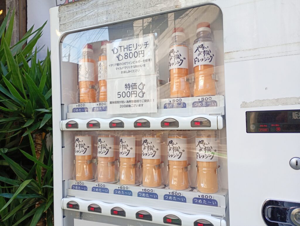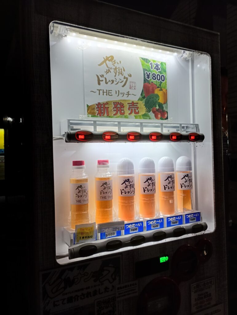 自動販売機がありましたが、全て売り切れでした。最近はドレッシングが大人気で製造や自動販売機への補充に大忙しだそうです。