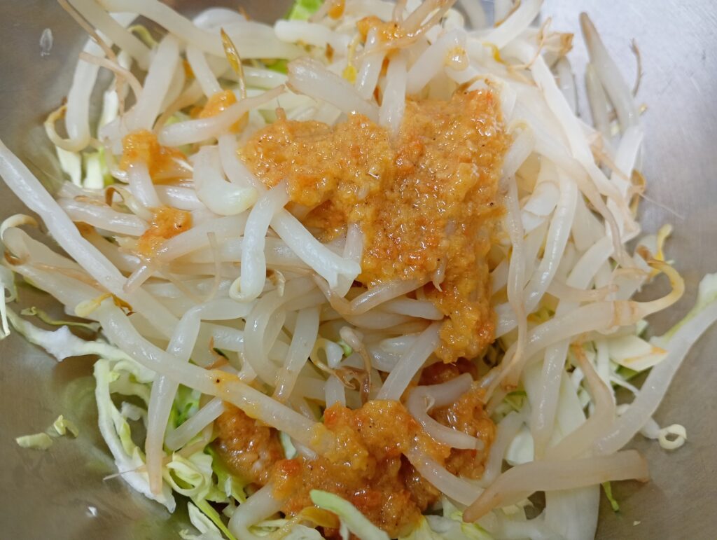 ドレッシングには具材がゴロゴロとたっぷり入っており、野菜と一緒に食べるとしっかりとした食べ応えがあります。アンチョビの風味が食欲をそそり、まさに「大人の味わい」です。お酒にも合いますね。