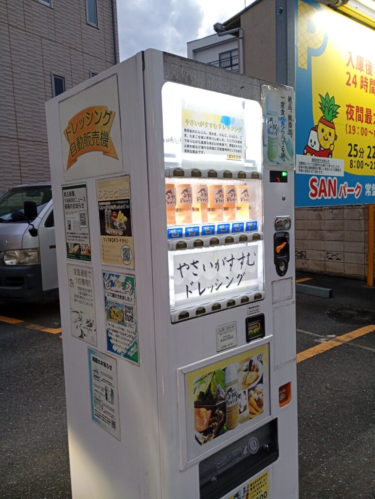 「A-one」さんの「やさいがすすむドレッシング」の自動販売機を見たことはないでしょうか?