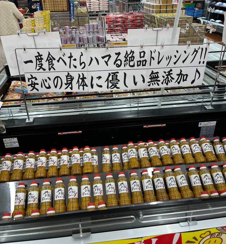 最近では、ドレッシングが人気を博し、スーパー「ロピア」や県内の東横INNでも販売・提供されるようになってきました。そのため、自動販売機での小売りに加えて、卸売にも力を入れているそうです。東北や中部地方からも引き合いがあり、「やさいがすすむドレッシング」は地域限定の人気商品から全国的な話題の商品へと飛躍を遂げています。