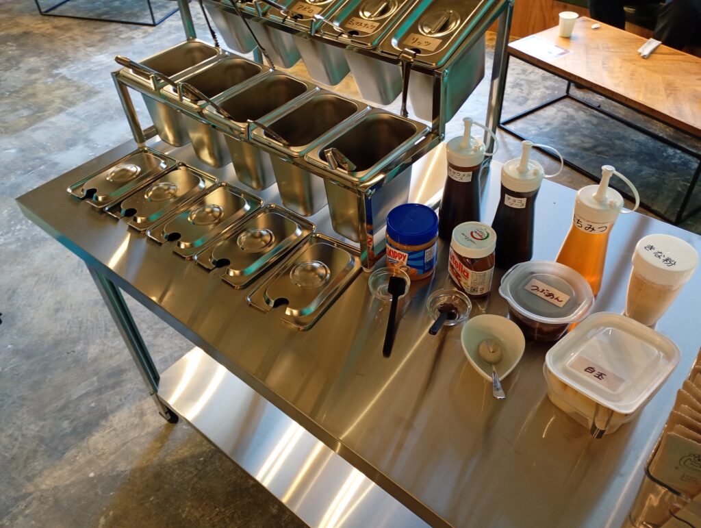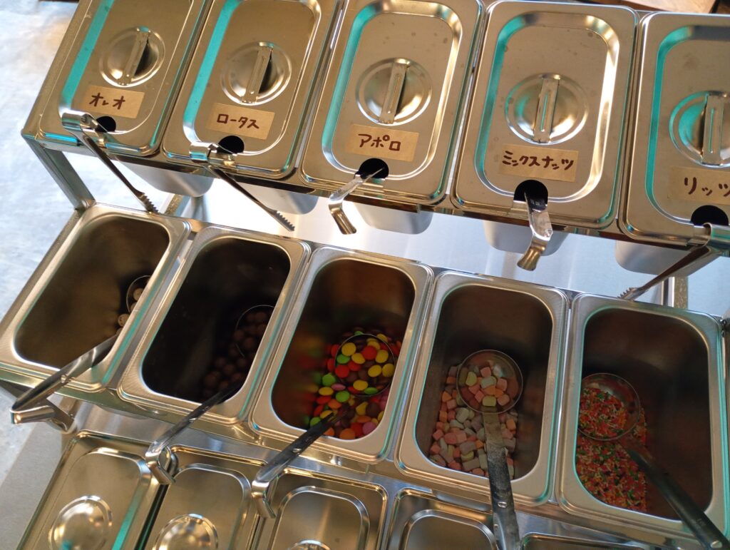 トッピングもとても色々な種類があるので、迷ってしまいますね。家へのお土産用に作ってみたのですが、果たして喜んでもらえるか(センスが問われますね💦)。