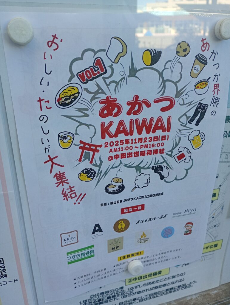 赤塚界隈の若手の起業家さんが集まって開催するイベント。中田出世稲荷さんで11月23日に開催されるそうです。