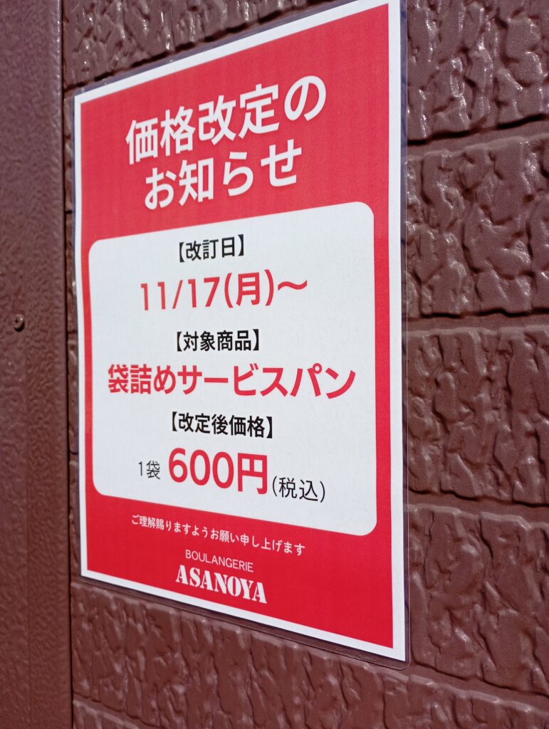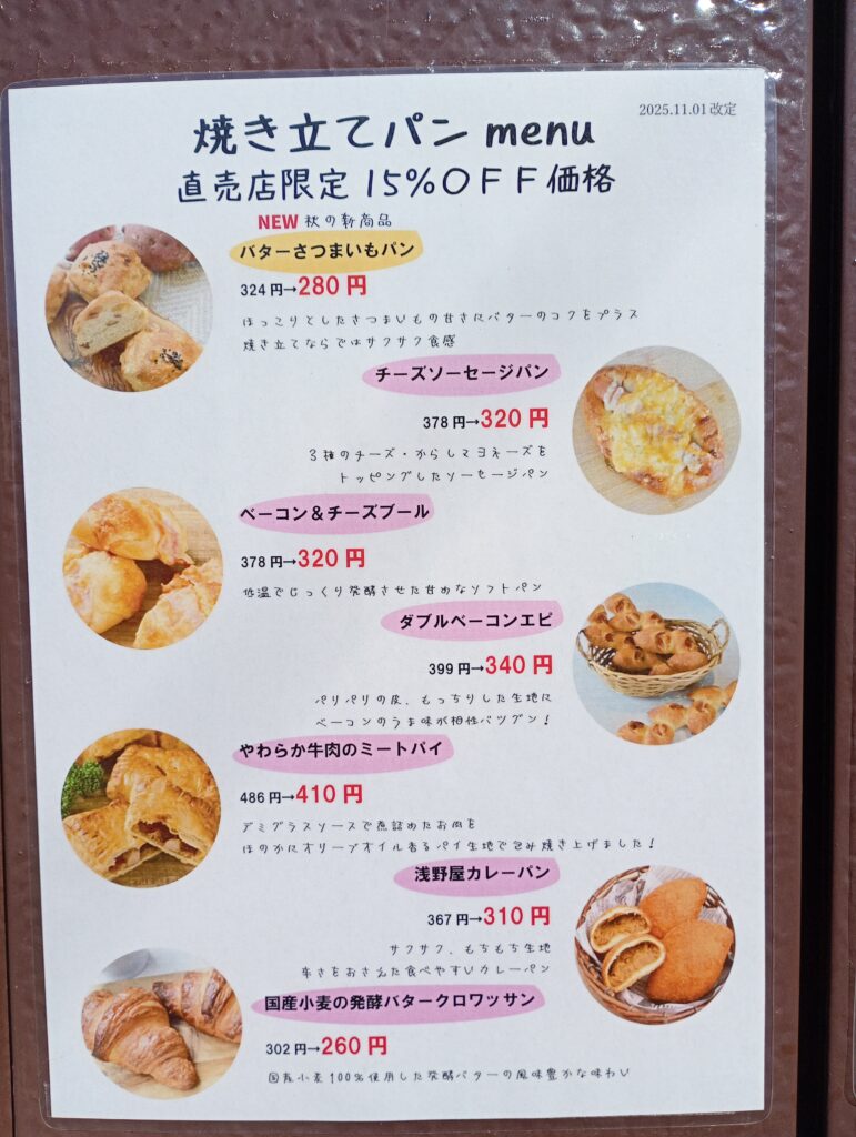 2025年11月の晴れた日に三園2丁目にある「浅野屋ミニベイクショップ」に行っていました。料金改定されたみたいです(500円⇒600円)が、それでも定価の半額以下のお買い得でした!