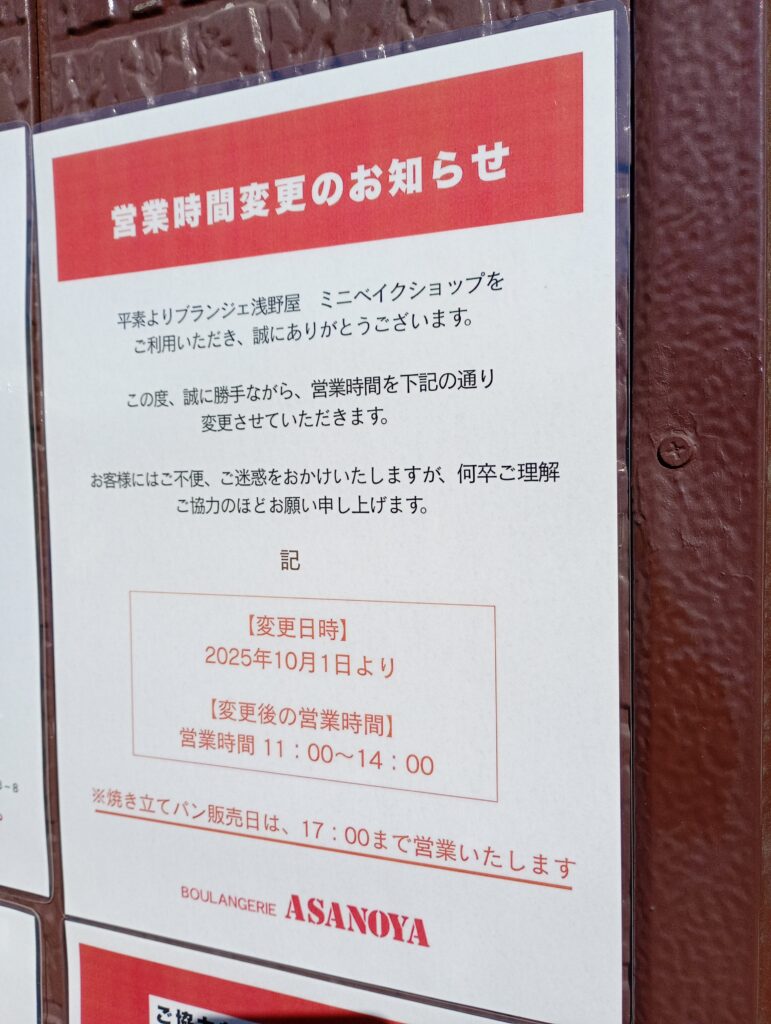 営業時間については、2025年10月から11時~14時に変更されました。また、原材料の高騰を受け、2025年11月17日からパンの値段も500円から700円に変更となりました。