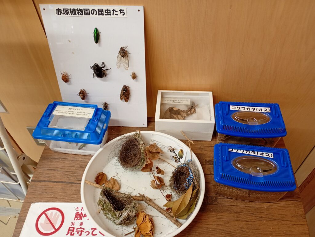 園内にいる虫の展示がありました。最近は生き物が住めるような環境整備も心がけており、カブトムシやコクワガタ、最近ではノコギリクワガタも店内で育っているそうです。カマキリやカナヘビ、ヤモリなんかもたくさんいるそうです。