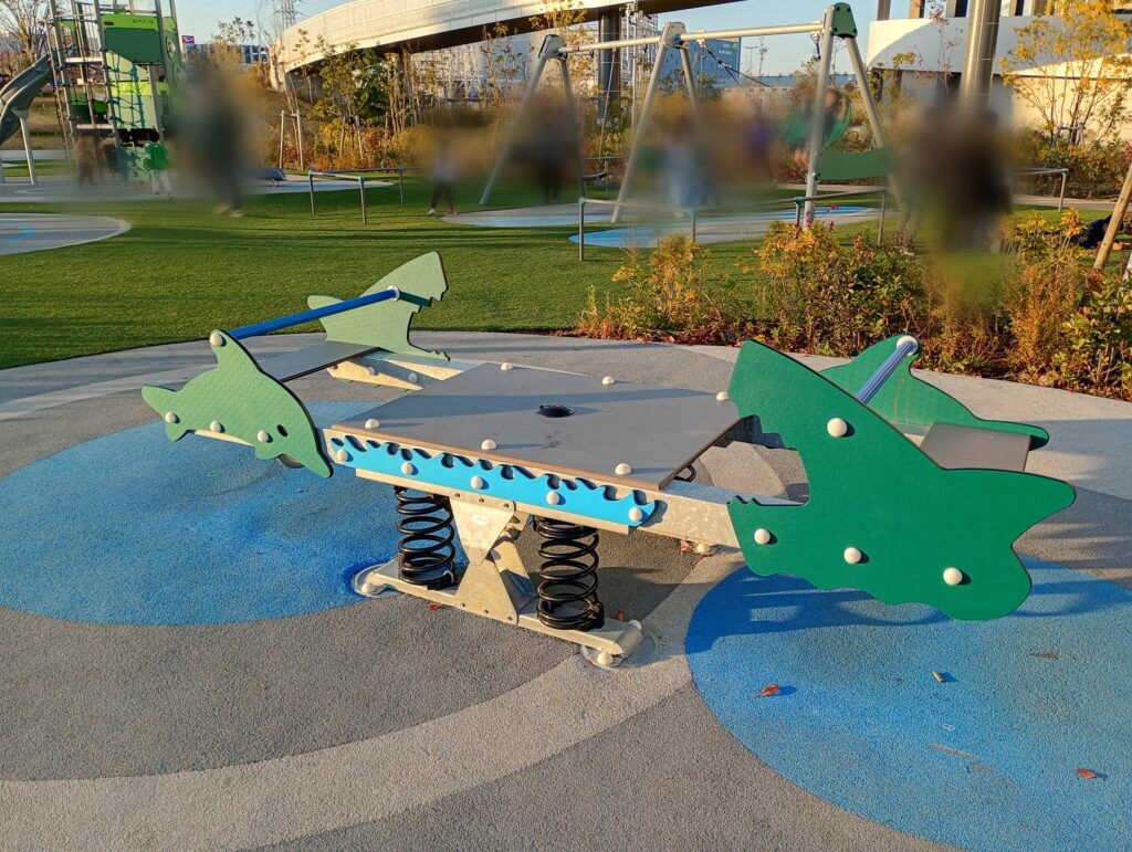 水辺の親水施設があったり、ジャングルジムがあったりもします。