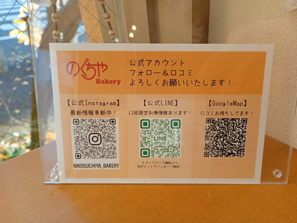 | HP/Instagram | のぐちやベーカリー | 下赤塚 パン屋 Line |