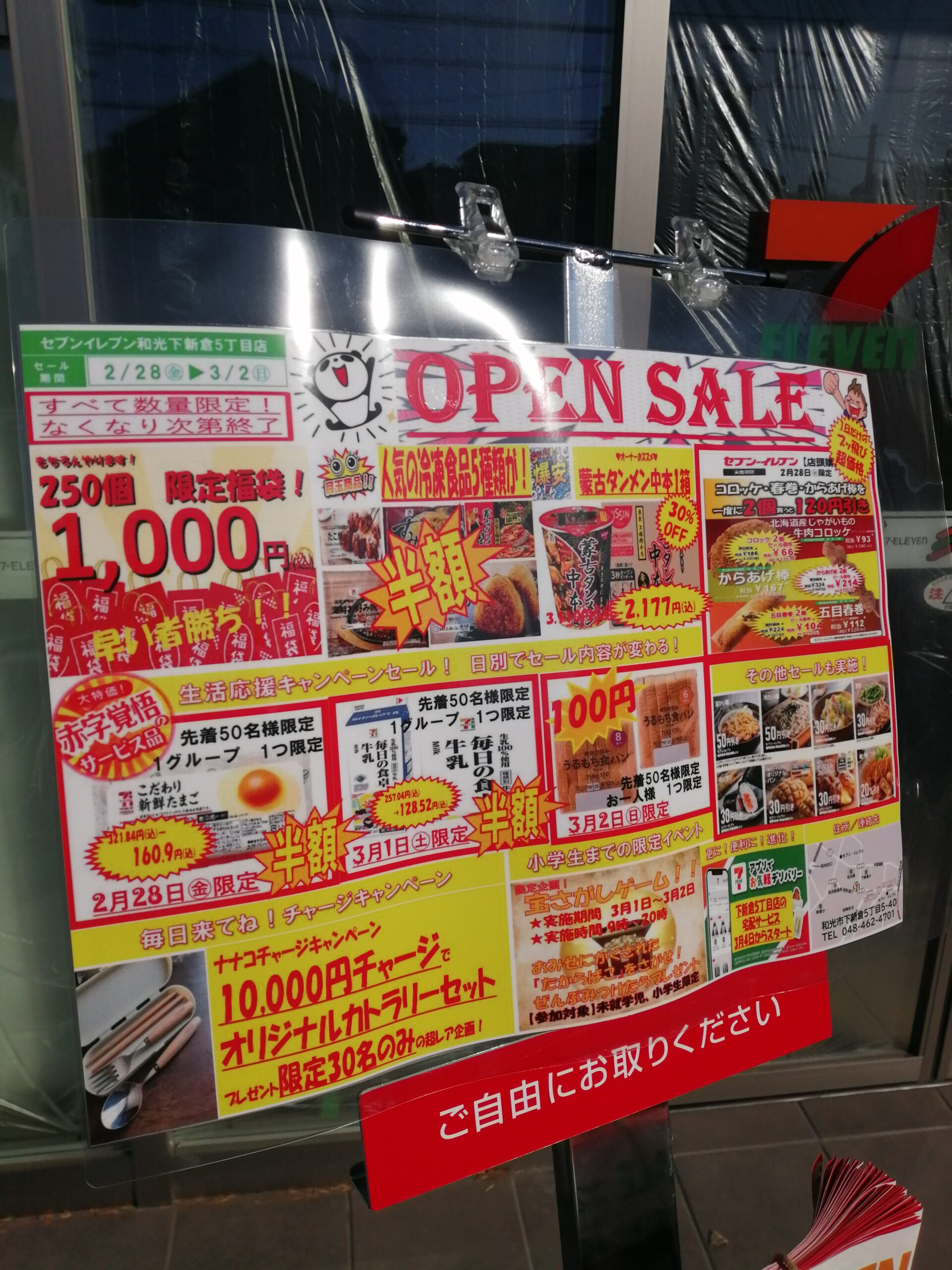 2月28日セブンイレブン和光下新倉5丁目がグランドオープン!半額セールもある⁉