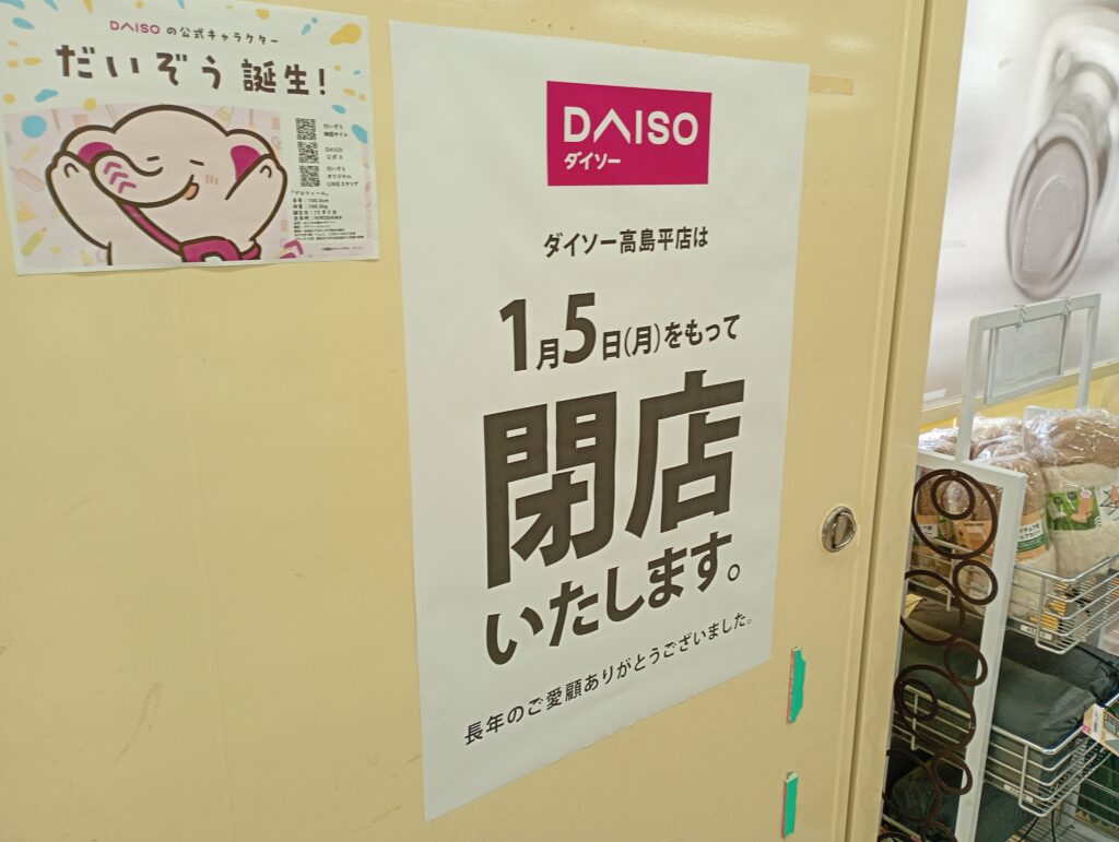 板橋区高島平7丁目の市場通りにある「ダイソー 高島平店」が、2026年1月5日(月)をもって閉店することがわかりました。長きにわたり地域に愛されたダイソーの大型店舗の閉鎖に、近隣住民から惜しむ声が上がっています。