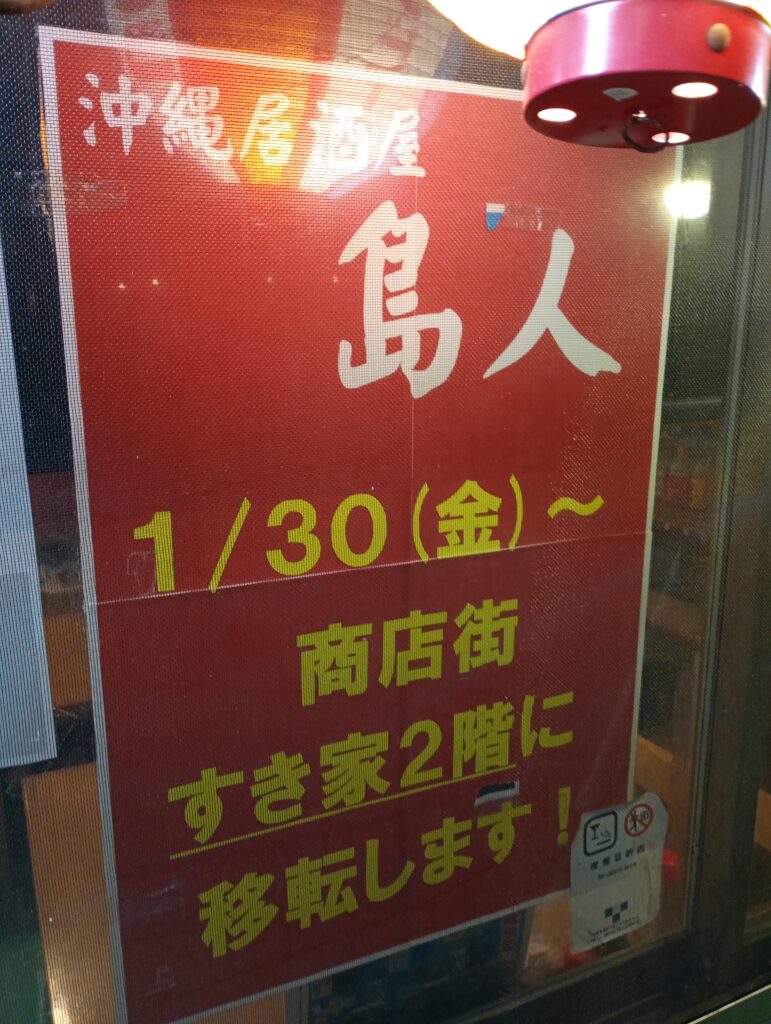 2026年1月17日をもってすずらん通りにある戦後の面影を残す「成増マーケット」の最後のテナントである「島人」さんご閉店し、スキップ村野すき家の2階に移転することとなりました(なりますチャットにて教えて頂きました。どうもありがとうございます)。