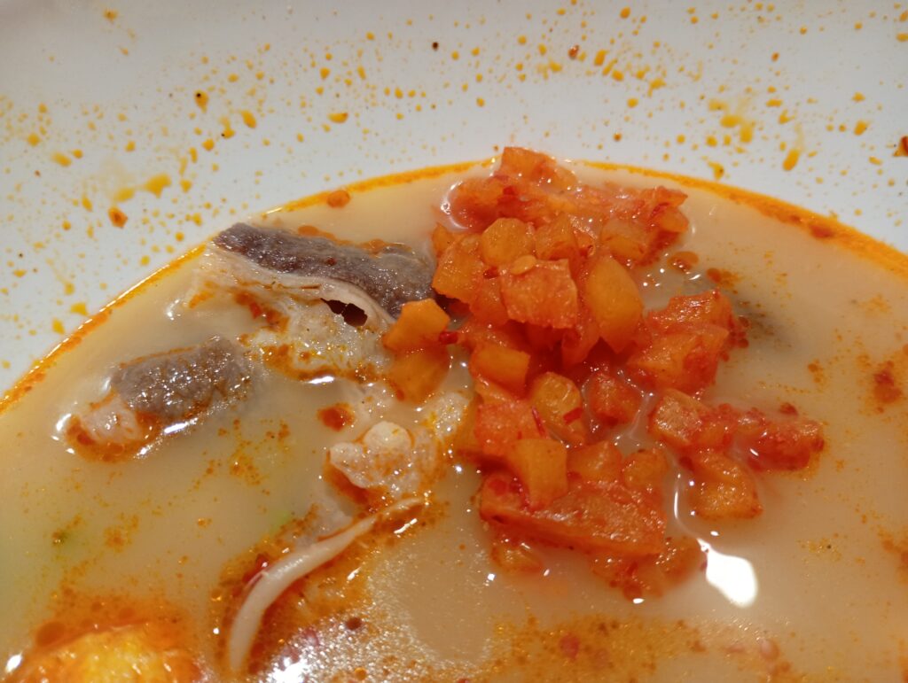 すごいしっかりと出汁が取れているスープです。少し羊の匂いがありますが、食べていてそんなに気にはなりません。