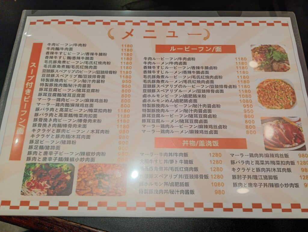 メニューはこんな感じです。湖北省や四川省の料理を提供されているそうです。