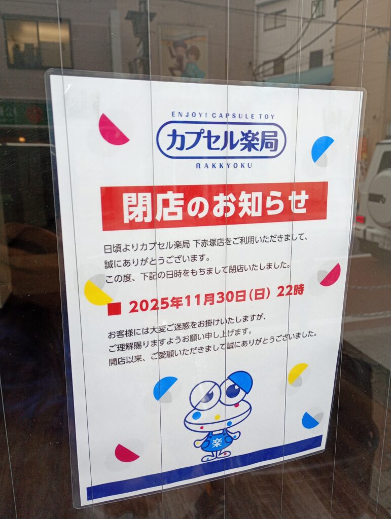 2025年11月30日カプセル薬局下赤塚店が閉店しました(あかつかチャットにて教えて頂きました。どうもありがとうございます)。