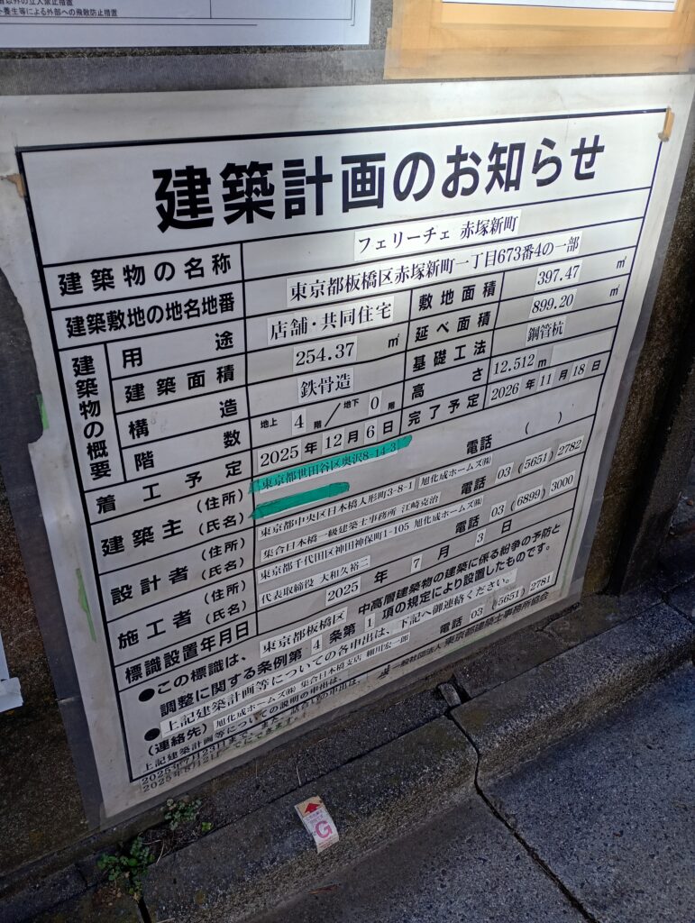 赤塚クリニックの解体後は「フェリーチェ赤塚新町」という地上4階のマンションが建設予定となります。