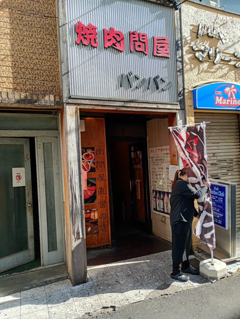 焼肉問屋バンバン成増店は、スキップ村からゲームセンターGIGOさんの脇にある小道を少し入った場所にあります。お昼営業は11時半からですが、オープン前には人が並んでいたりします。