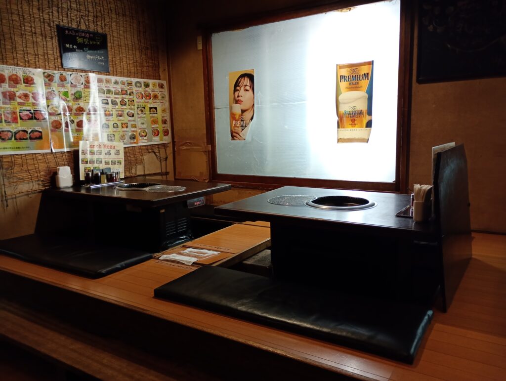 階段を降りると左手にテーブル席、右手に掘りごたつ式の座敷があります。