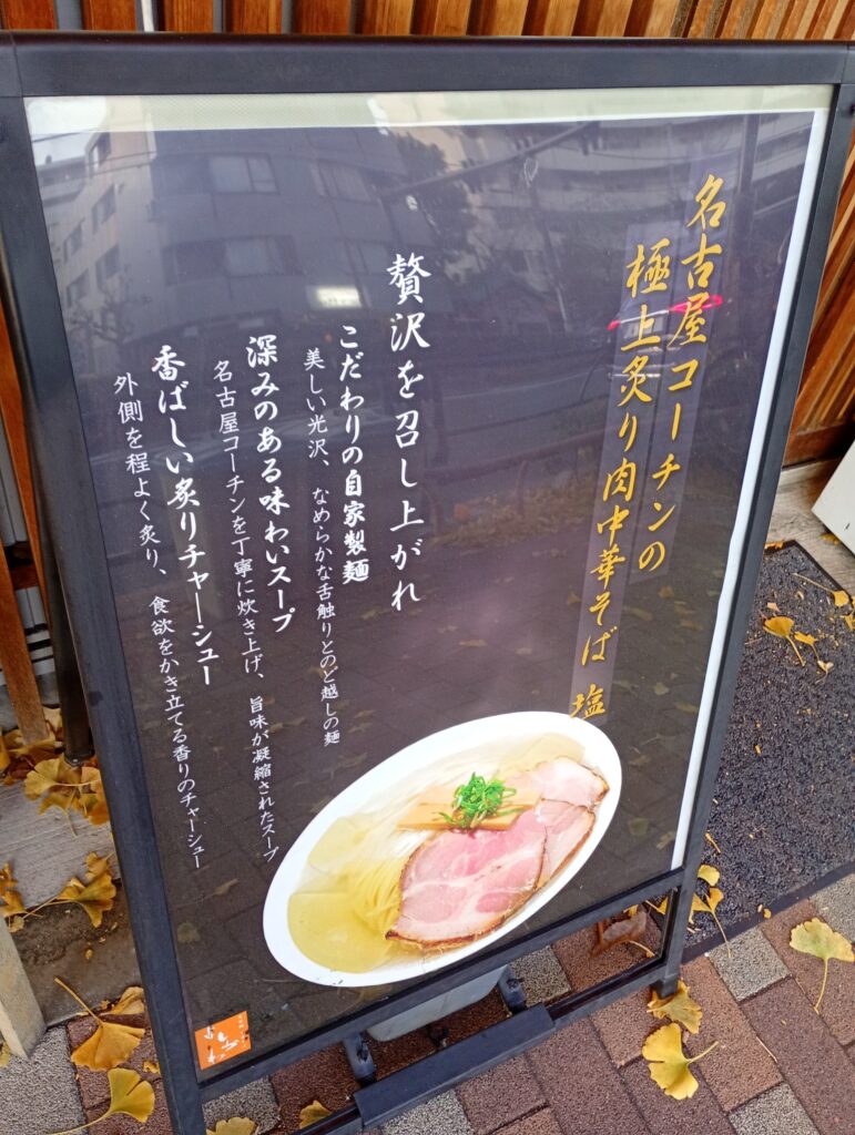 筆者も食券機の前で迷っていたところ、店員さんから「名古屋コーチンを使った中華そば塩が特におすすめですよ」と勧められました。今回はそのおすすめに従い、名古屋コーチンで出汁をとった「中華そば塩」(950円)を注文しました。