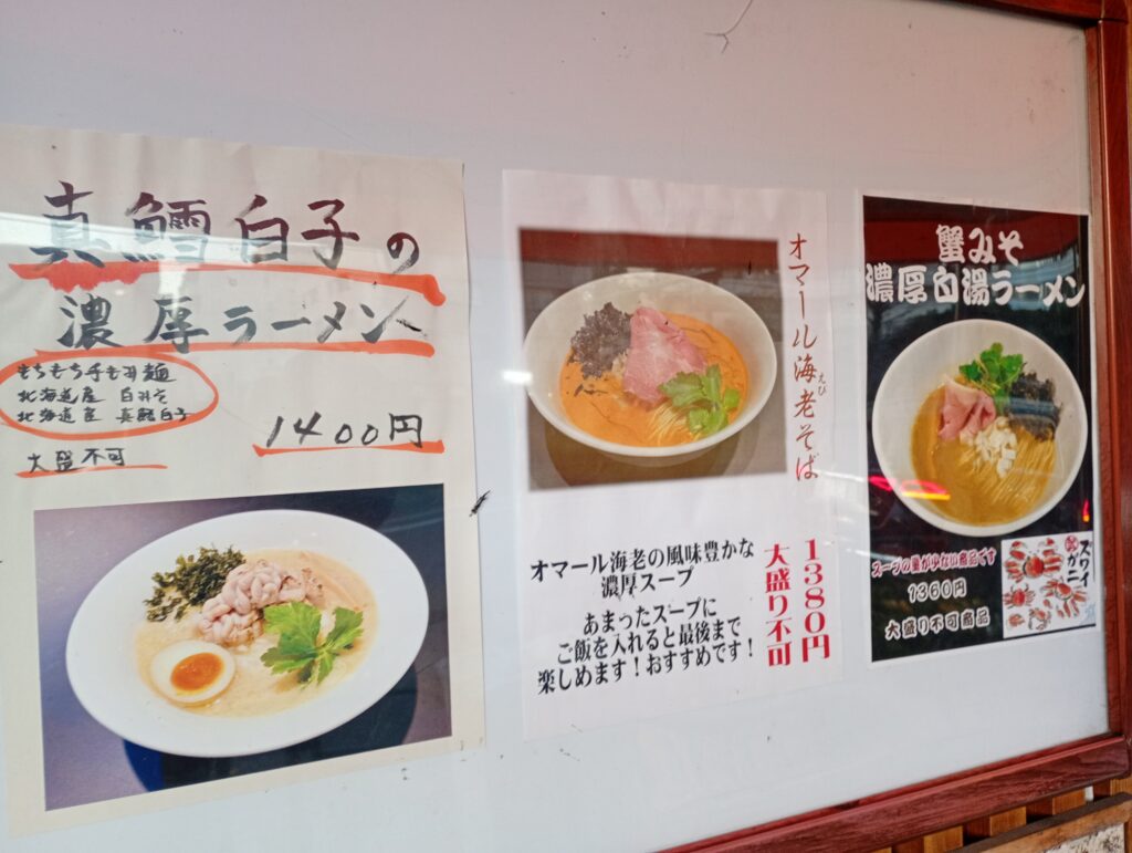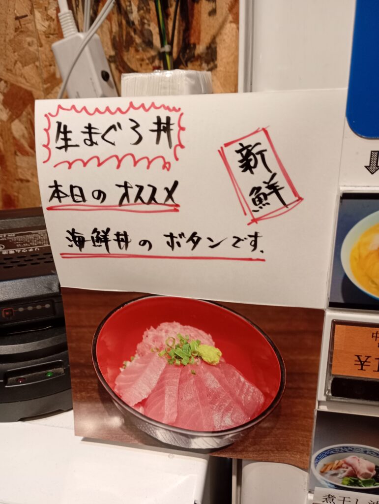この日は定番に加え「生まぐろ丼」も提供されていました。季節の鮮魚を贅沢に使った限定麺も多く提供されており、オマール海老そば、濃厚烏賊白湯そば、真鱈白子の濃厚そばなど、訪問のたびに新しい味を楽しめるのも魅力です。