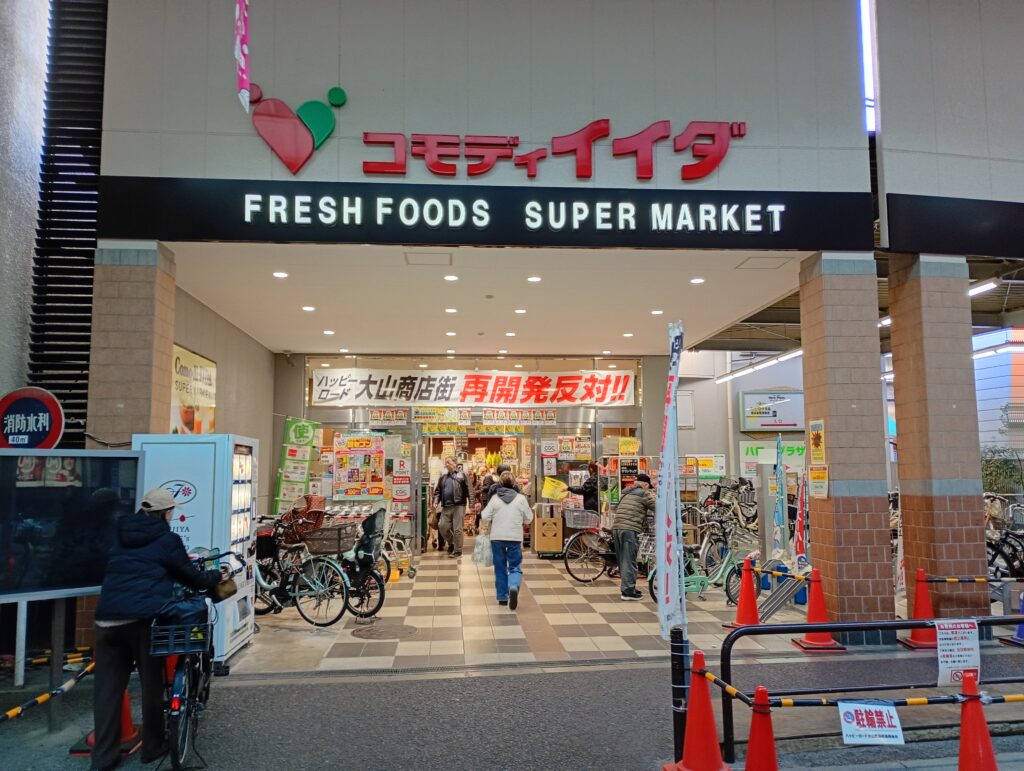 都市計画道路補助第26号線(ハッピーロード大山商店街の分断)の整備に伴い、この地域では立ち退きが加速しています。その象徴として、創業100年近い「大曽ストアー」が2025年12月末をもって閉店することが決定しました。長年地域住民に愛されてきた老舗が姿を消すことは、再開発の大きな変化を物語っています。