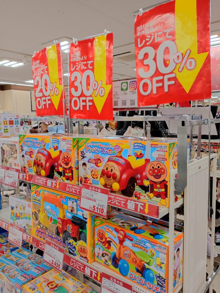 - バースデイ(ベビー・子供用品) 衣料品だけでなくおもちゃコーナーも充実しているため、サンタさん代わりのパパ・ママたちが真剣にプレゼントを選ぶ姿が印象的でした。