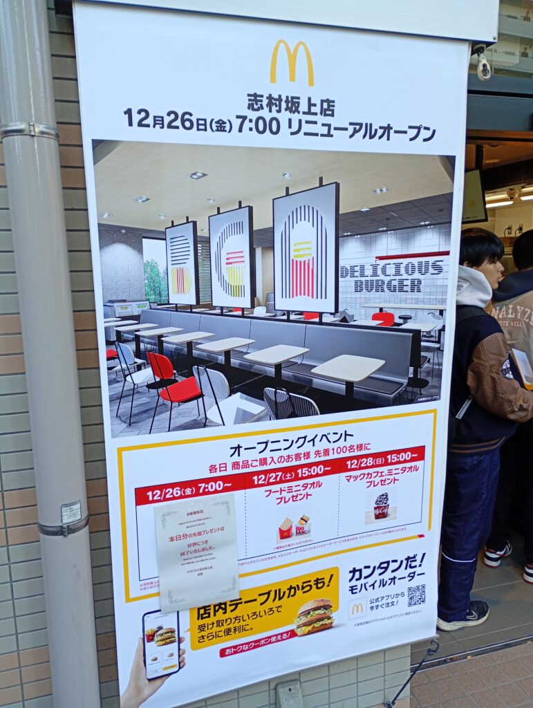 板橋区の皆様、お待たせしました!2025年9月1日から一時休店し、リニューアル工事を行っていた「マクドナルド志村坂上店」が、ついに2025年12月26日にグランドオープンを迎えました。