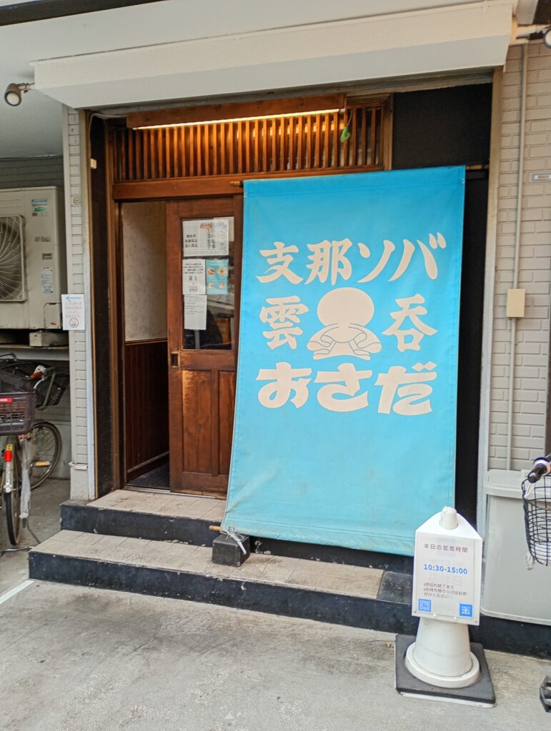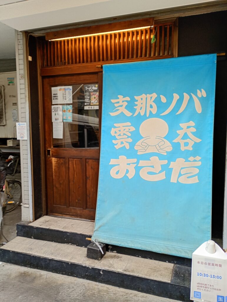看板に描かれた、青い空に浮かぶ白い雲のような印象的なロゴ。「雲を呑む」と書く「雲呑(ワンタン)」。背景の青は空、ロゴの白は雲。そんな店主の深い愛が詰まったワンタンこそ、この店の看板メニューです。
