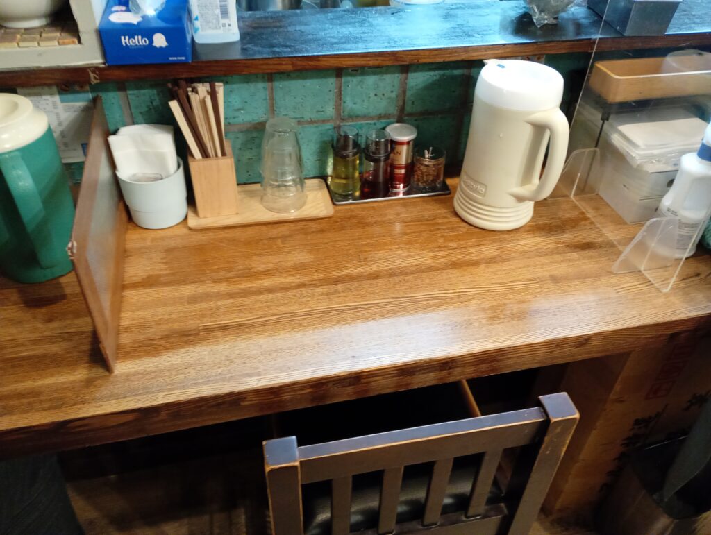 店内はカウンター5席に加え、4人掛け卓が2つ、2人掛け卓も完備。バギーで入店できるスペースも確保されており、一人客からファミリーまで、誰もが一杯のラーメンを心から楽しめる落ち着いた空間となっています。