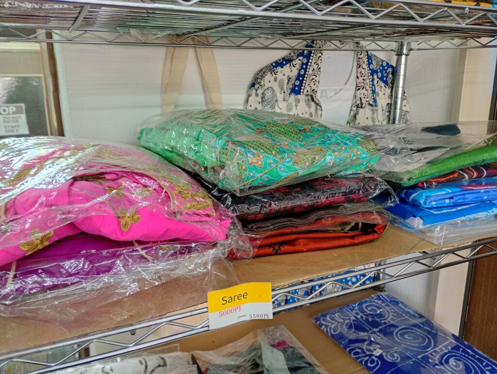 店内に並ぶ可愛い象さんのキーホルダーやTシャツ、そして色鮮やかなサリー。 実はこれ、単なる雑貨ではありません。
