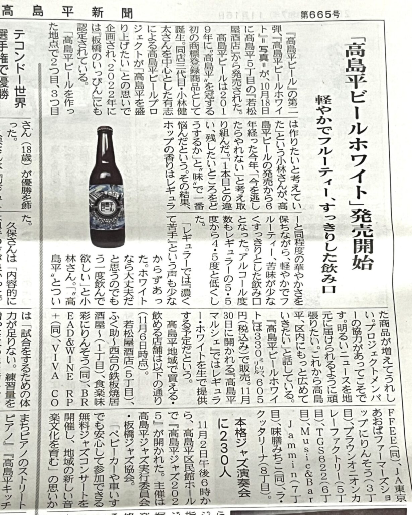 このホワイトビールには、街の高齢化が進み、娯楽が減りつつある高島平に、もう一度「彩り」を取り戻したいという願いが込められています。
