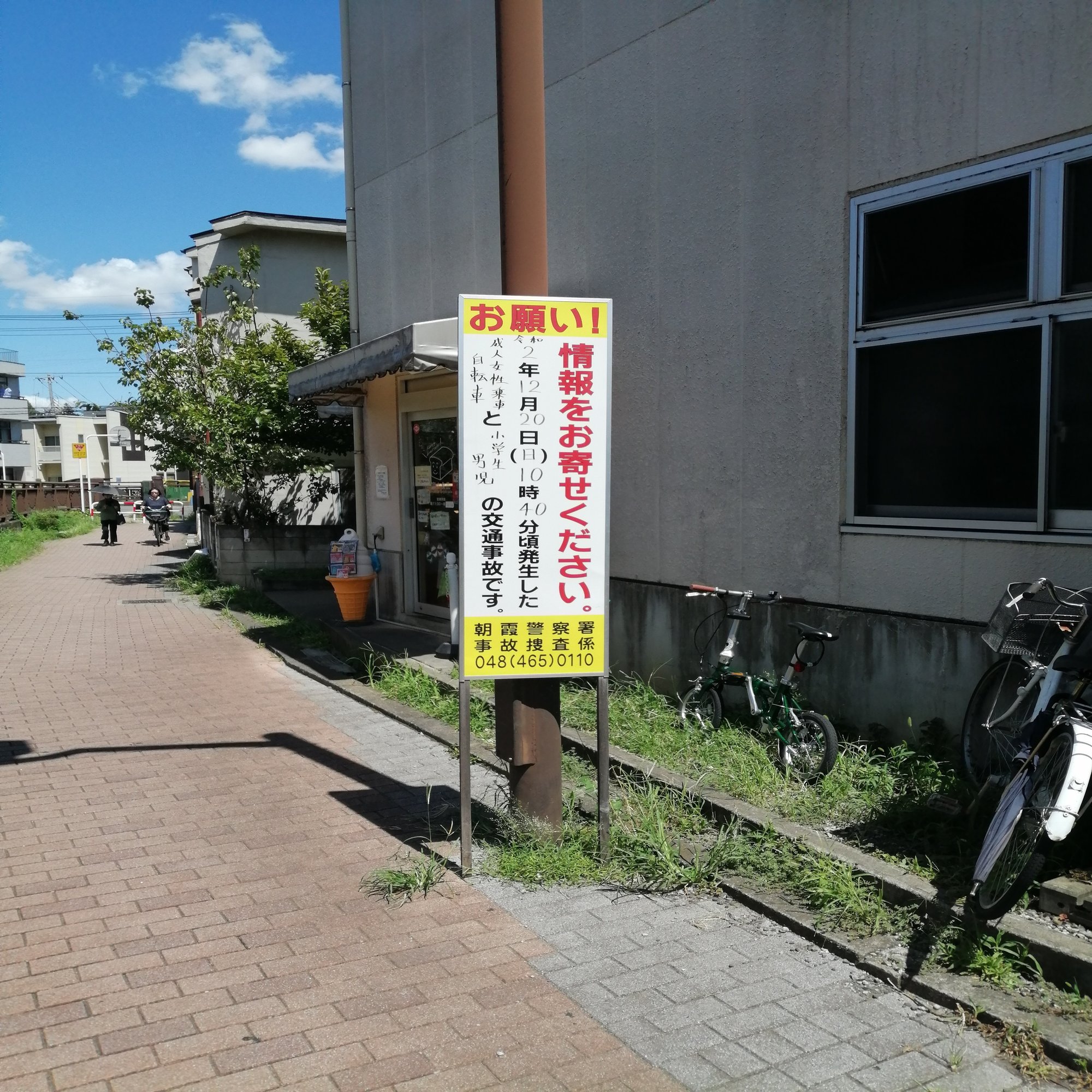 富士食品のすぐそばにある白子川にかかる橋は事故が多発する地点です。(事故発生マップを警視庁が作成している関係で埼玉県警の管轄の情報がないのですが、)事故情報収集の立て看板が立っていたりします。