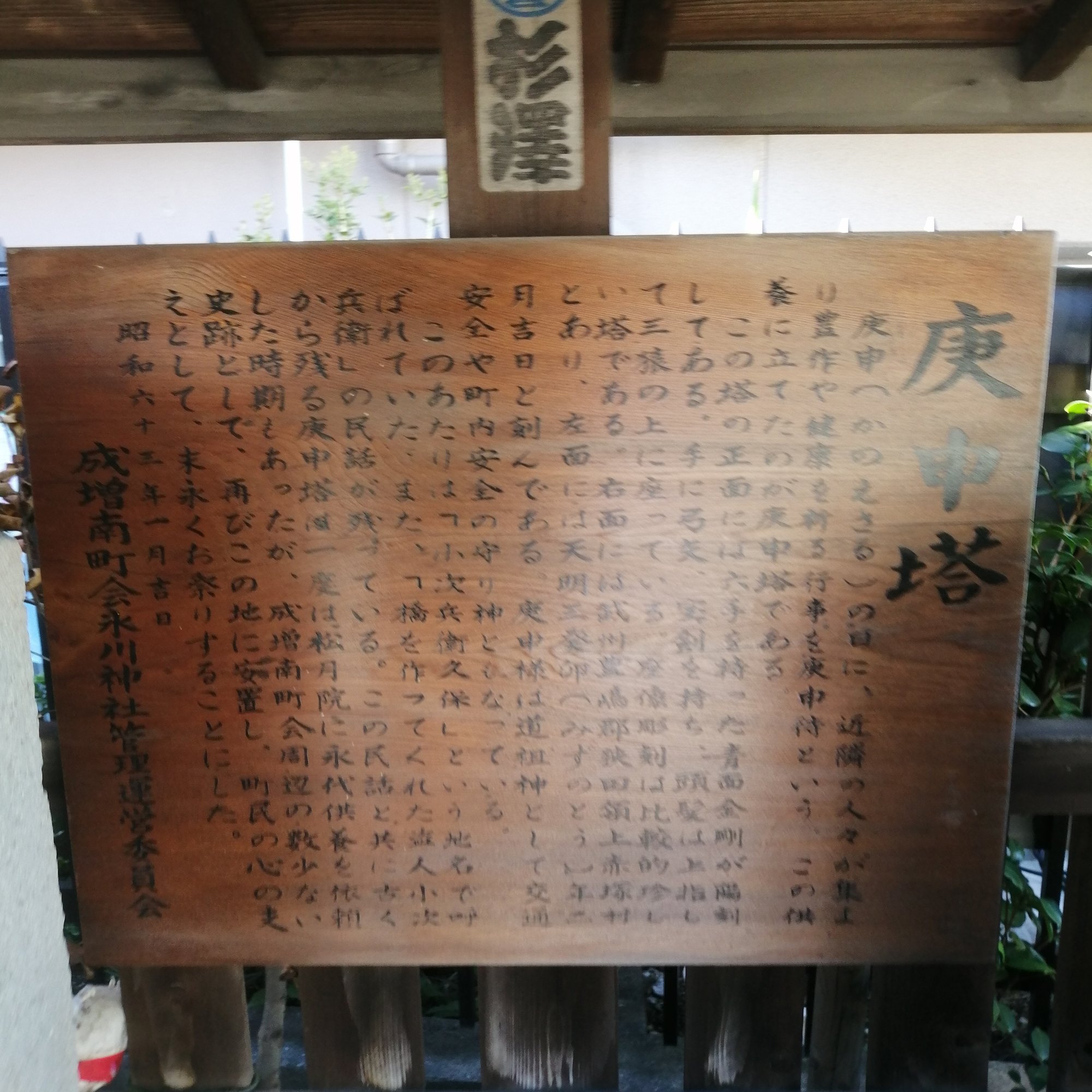 さらに言えば、成増駅周辺で事故が頻発する「成増小学校入口交差点」は(現在では西友成増店の建設に伴い百々向川は断絶されてしまいましたが)かつてはすぐ近くをもいずれも百々向川が流れていました。実際、交差点から少し赤塚川に進むと庚申塚がありこの地にあった「橋」についての記述があります。
