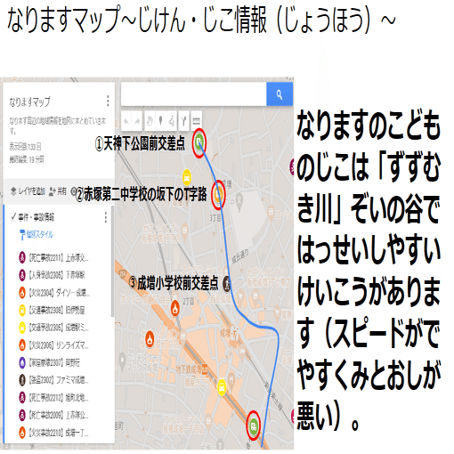 今回は成増周辺で子供の事故が起こりやすい場所を警視庁の事故発生マップを参考に実地調査を行いながら記事にまとめました。