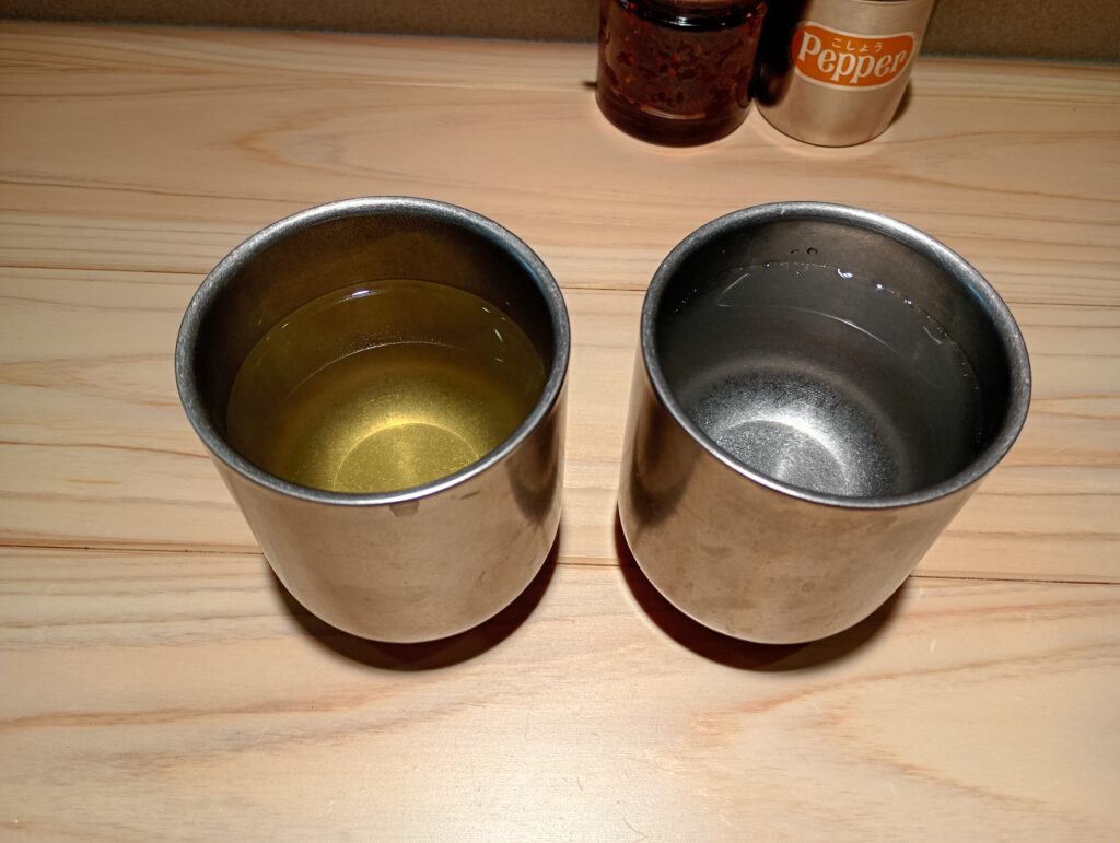 席につくと、冷たいお水のほかに温かい「だし汁」が提供されるのも嬉しいポイント。寒い日のオープンだったこともあり、この優しさが体に染み渡ります。