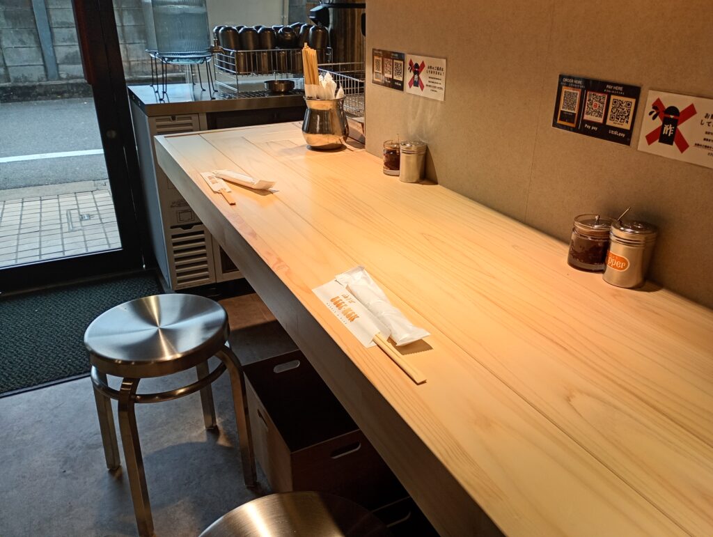 注文と決済は、店内のQRコードからクレジットカードや電子マネーでスマートに完結できます(もちろん食券機では現金もOK)。