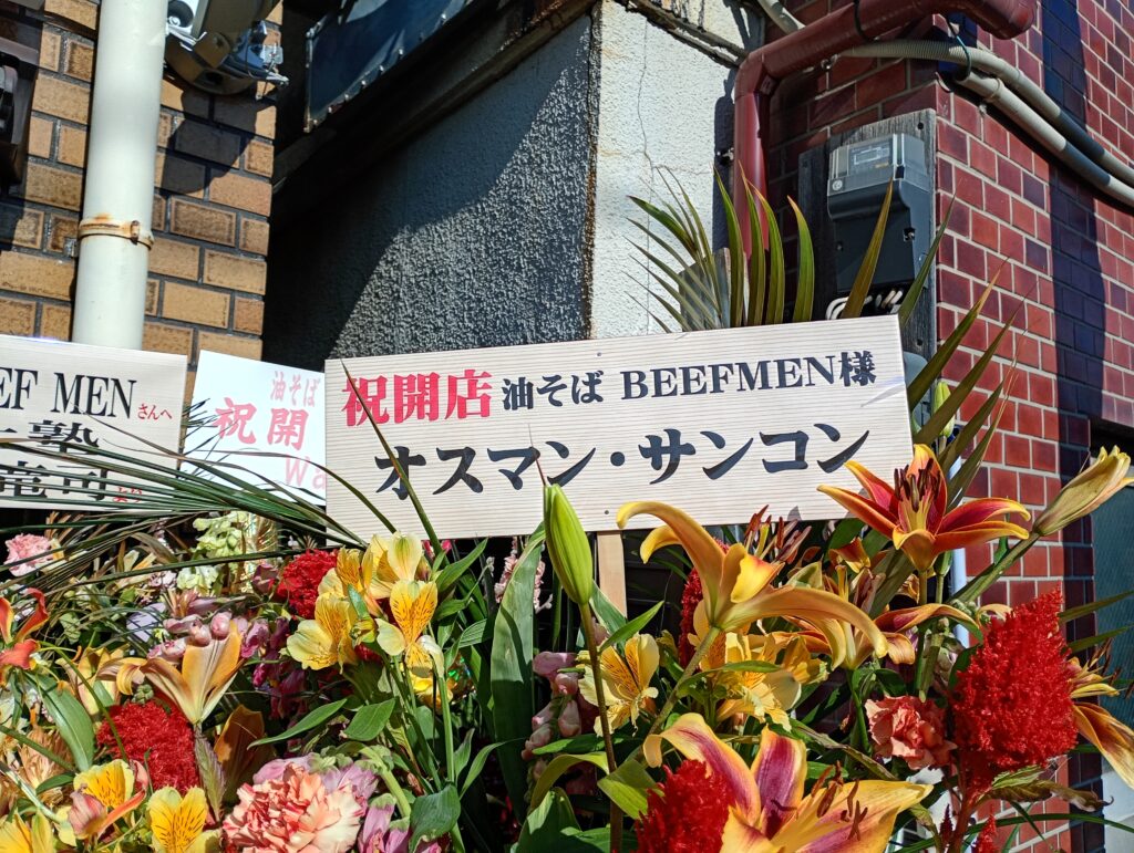 実はこのお店、オープン早々から店頭がとっても華やか。なんと、板橋区出身で知られる辻希美さん・杉浦太陽さん夫妻や、オスマン・サンコンさんからもお祝いのお花が届いており、地域の方々や通りがかる人の注目を集めていました!