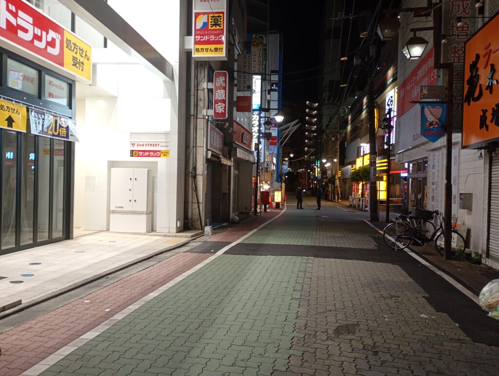 昼間はそんなに目立たないのですが、夜間になると監視の目が無くなるので、中心が非常に多くなります。ハナマサへの買い物、フィットネス、近隣の飲食店の利用客等が駐輪していきます。目の前に駐輪所があり、また空きもあるのですが、上段は使い辛かったりするので路上に違法駐輪が横行してしまうようです。